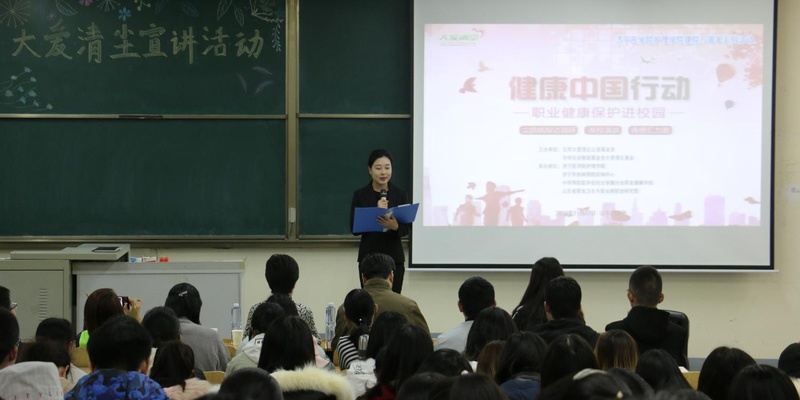 为了提高社会对尘肺病的关注度,关爱呼吸困难的尘肺病劳动者群体,积极响应国家建设健康中国的时代号召,护理学院于2019年11月27日15时40分在教学楼309教室举办“大爱清尘”主题宣讲活动。本次活动由大爱清尘救助基金会和中华社会救助基金会主办,济宁医学院护理学院、济宁市疾病预防控制中心、中华预防医学会妇女保健分会职业健康学组承办。山东省职业卫生与职业病防治研究院主任邹建芳、大爱清尘救助基金会山东省专员骆萍、济宁市疾控中心职业病防制与职业卫生评价科科长赵方以及济宁医学院护理学院党总支副书记杨绪霞出席此次活动。