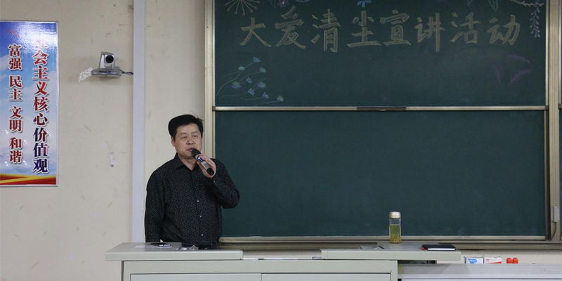 赵方以“尘肺病”为题,向同学们普及尘肺病知识,宣传尘肺病预防措施,让同学们知晓尘肺病的危害,提高自我防护意识,减少粉尘接触危害。邹建芳以“健康中国行动职业健康保护进校园---尘肺病”为主题,给同学们介绍了粉尘的危害性,用一个个生动的例子,一张张触目惊心的图片讲述了尘肺家庭的艰辛、大爱清尘组织以及社会志愿者活动等。大家被尘肺患者生活的艰辛和痛苦深深触动,也被大爱清尘每一位志愿者的执着和奉献而感动。同学们也精心排练的反映煤矿工人现实生活的情景剧《南冶》,获得了现场老师及同学们的热烈掌声。在活动的最后还设计了有奖问答环节,并在同学们的积极参与中圆满结束。