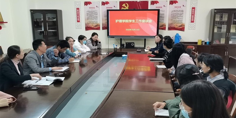 为了全面贯彻党的教育方针,加强学生教育管理及考评工作科学性和规范性,2020年10月14日上午,护理学院召开了学生工作交流座谈会,就学院近期开展的学生管理和学生综合素质测评等工作进行师生间的交流。