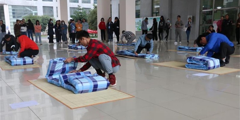 为进一步规范宿舍管理,提高同学们整洁、自律意识,2020年10月10日上午7点,护理学院于图文信息楼一楼成功举办叠被子大赛。学生会各部门部长担任大赛评委,2020级新生同学参加此次大赛。