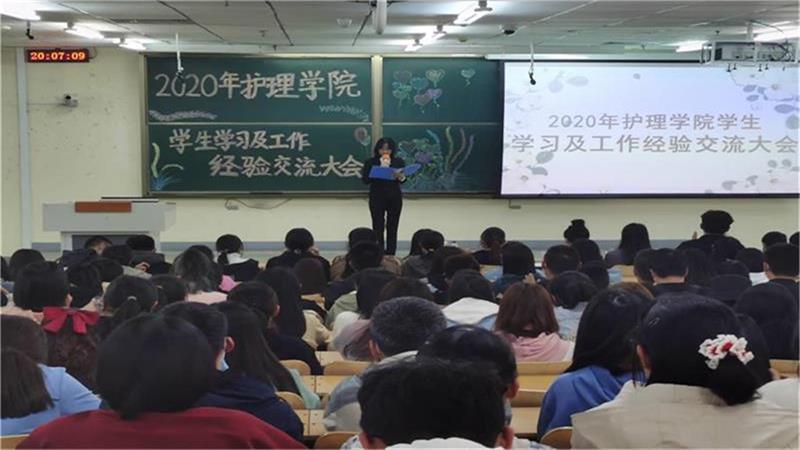 10月22日晚,护理学院在教学楼411教室举办了2020年学生学习及工作经验交流大会。辅导员田由甲、张莉莉、李雪和2020级全体新生参加此次大会。