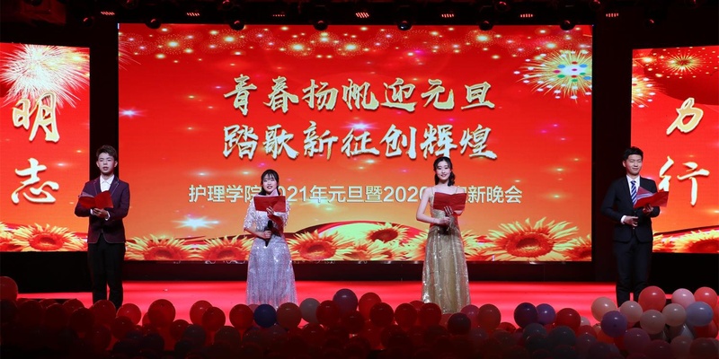 12月29日晚,护理学院2021年元旦暨2020级迎新晚会在大学生活动中心举办。校团委副书记刘瑞文、护理学院党总支书记高鸿、院长王文军参加晚会。