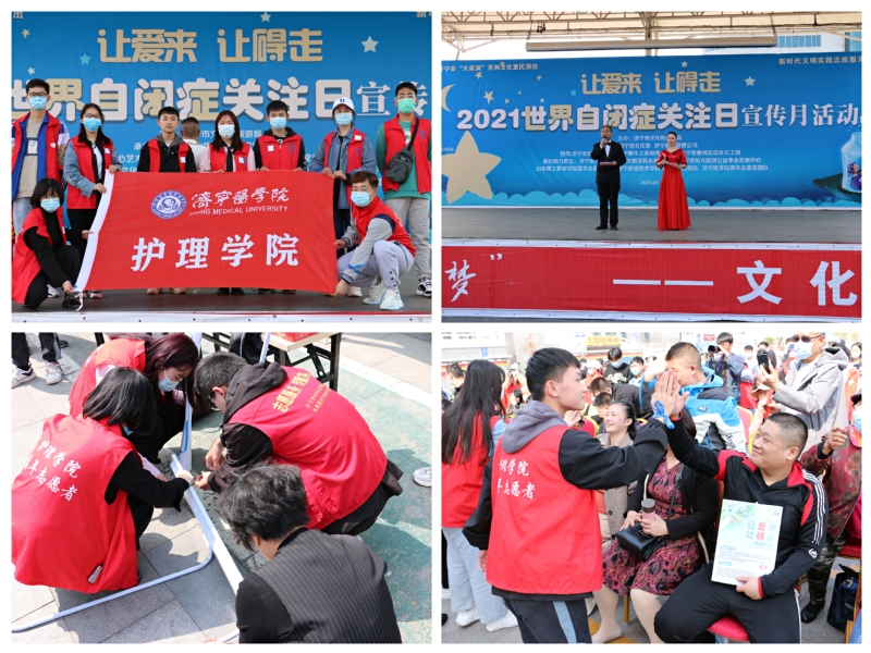 为迎接第14个国际自闭症关注日,提高对自闭症认识,4月10日下午,我院组织青年志愿者赴任城区运河文化广场,参加自闭症关注日文艺汇演宣传活动。
