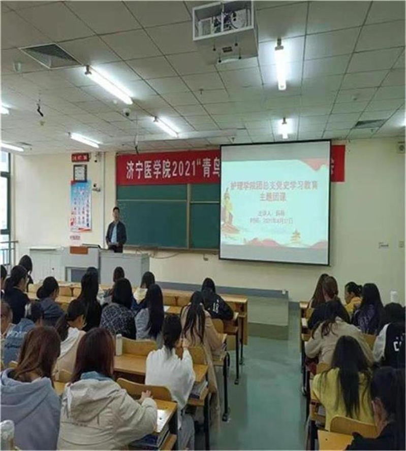 在全团广泛开展“学党史、强信念、跟党走”学习教育之际,4月27日下午,2019级护理学本科1-2班团支部联合开展了以“学党史、强信念、跟党走”为主题的党史学习教育团日活动。团总支书记薛刚应邀参加了本次活动。
