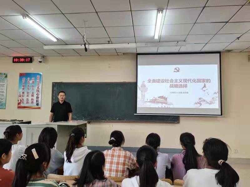 朱民强以《全面建设社会主义现代化国家的战略选择》为题,引导同学们要把自己的理想同祖国的前途、把自己的人生同民族的命运紧密联系在一起,赓续红色血脉,传承红色基因,树立目标,接续奋进,奉献国家,沿着习近平总书记指明的前进方向成长成才。