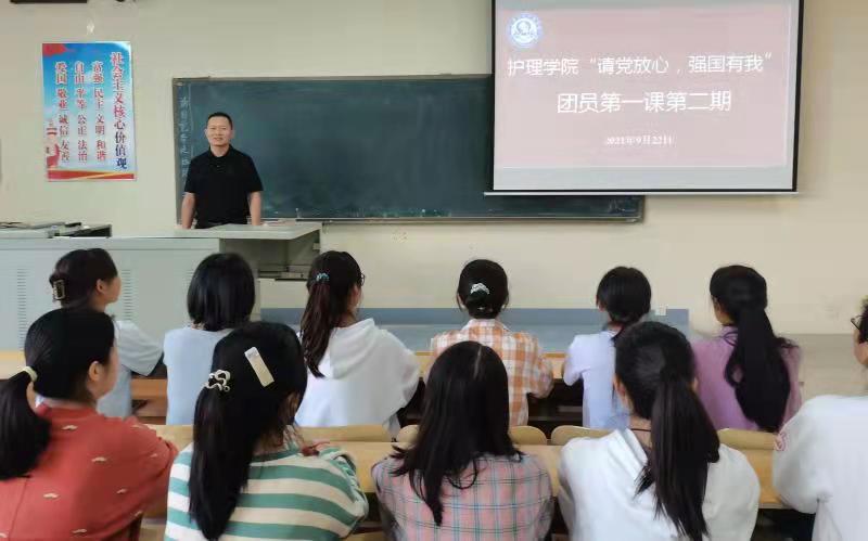根据校团委开展“请党放心,强国有我”团员第一课活动安排,9月22日,马克思主义学院教师、护理学院班主任朱民强带头讲“示范课”。
