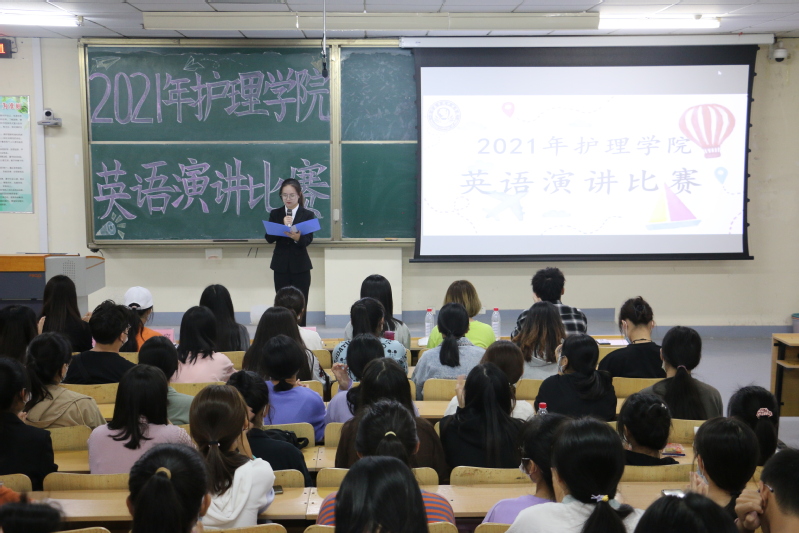 为提高同学们的英语水平,培养学生的口语能力,营造良好的英语学习氛围,9月29日晚,2021年护理学院英语演讲比赛在教学楼211成功举办,辅导员李雪、刘娅、学生会各部门部长以及各年级同学共同参加本次活动。