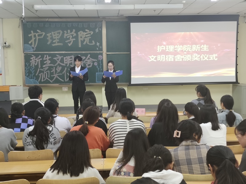 颁奖仪式开始前,同学们欣赏了优秀宿舍照片。接着,蒋红老师对新生文明宿舍评选中表现优秀的宿舍提出了表扬,希望大家能再接再厉,努力营造美好校园氛围。最后老师们为获奖宿舍颁奖。