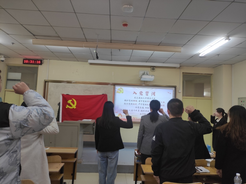最后,支部书记在会上提出了要求,希望新入党同志们要不断增强入党的光荣感和责任感,不但在组织上入党,还要在思想上入党,使自己真正成为合格的共产党员;要不断学习,提升自己的履职能力和素质,在学习和工作岗位中,以身作则,率先垂范,更好的发挥党员先锋模范作用;作为新党员,要时刻树立党的观念,切实履行党员义务,定期汇报思想状况,接受组织考验,争取按期转正。