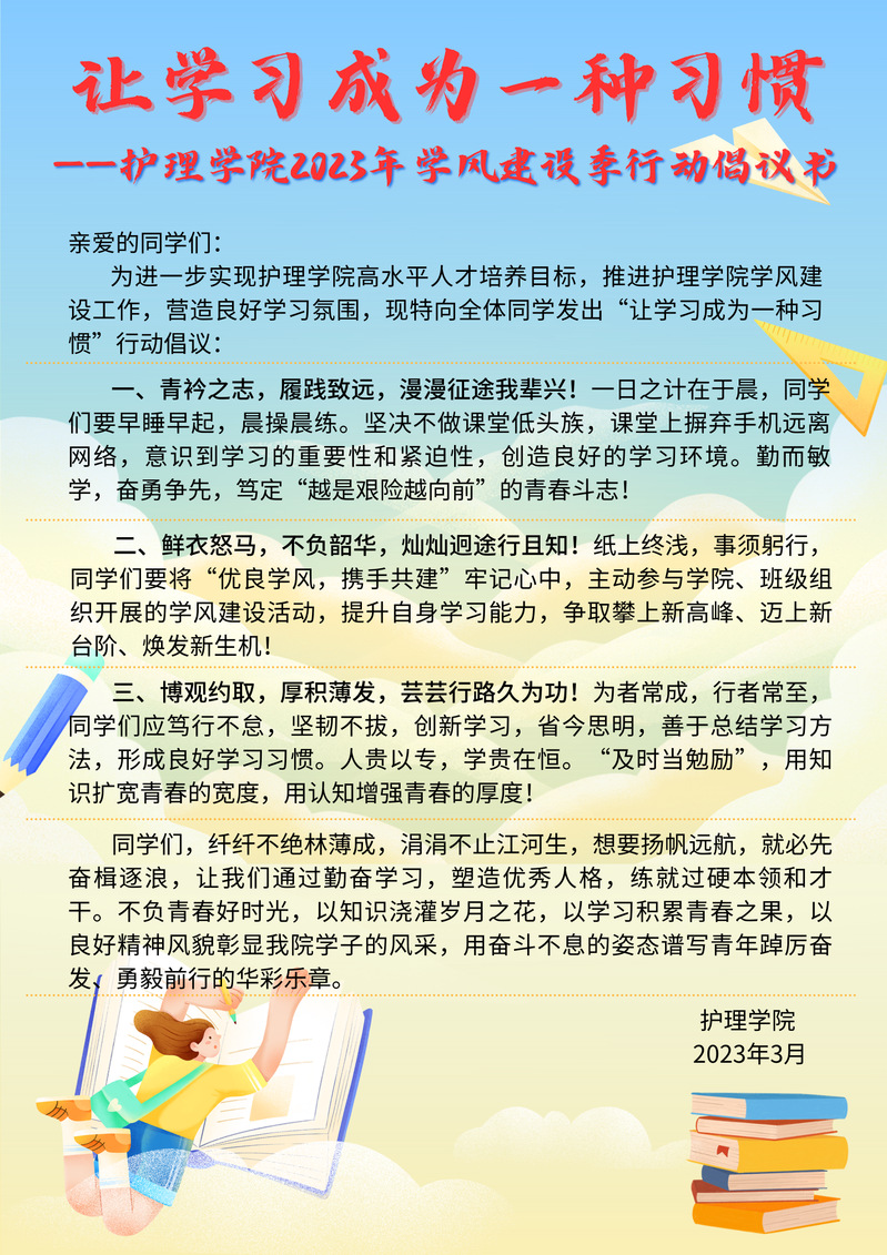 让学习成为一种习惯——护理学院2023年学风建设季行动倡议书