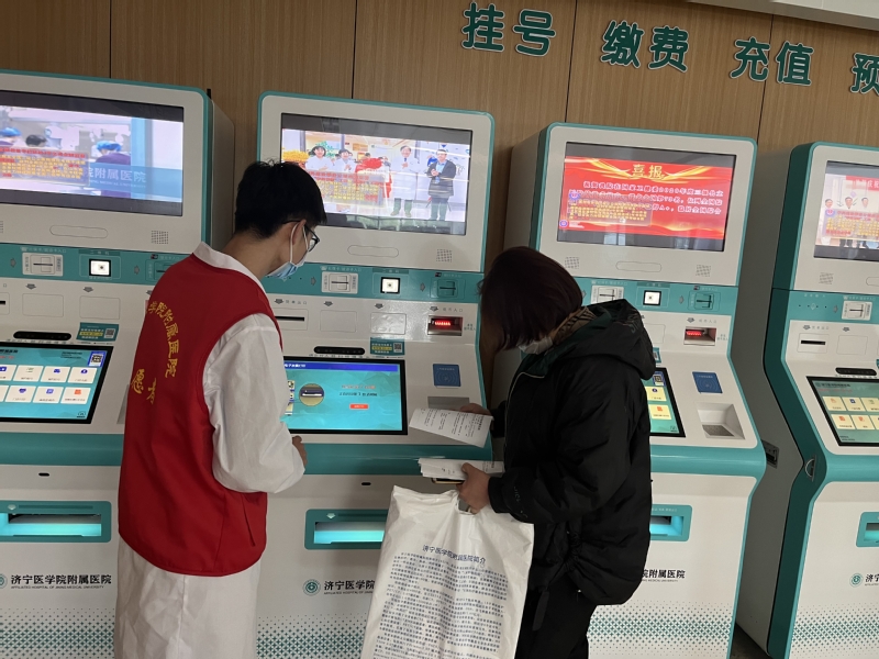 活动当天,志愿者们早早来到医院等待,随后在负责人安排后前往不同地点开展志愿服务,通过在培训会获得的知识服务有需要的患者和家属。活动过程中,志愿者们勤勤恳恳、认真工作,主动为有需要的患者和家属提供帮助,以实际行动让患者和患者家属感受到了温暖。在志愿服务的过程中,志愿者们也感受到了医务工作者的艰辛,同时也体会到本次实践的意义。