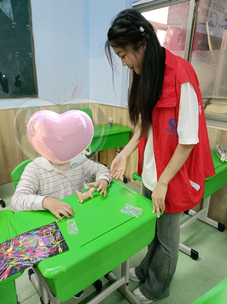 活动期间,志愿者们热情积极地分发准备好的手工材料,陪同孩子们一起手工DIY、制作沙画以及用太空泥捏制各种小动物,培养小朋友们的动手能力和创新能力,增强自尊自信的信念。了解他们的生活、心理和学习方式,以实际行动让孩子们感受到了温暖。