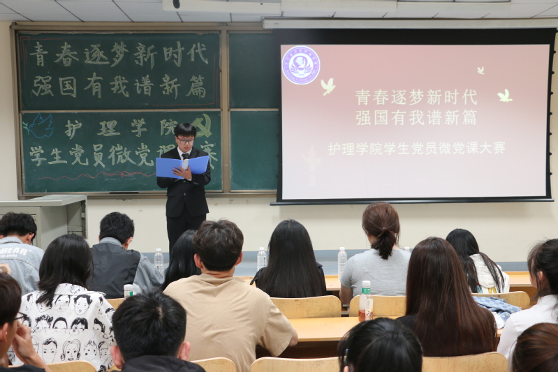 为推动党史学习教育常态化长效化开展,引导当代大学生深入学习贯彻党的二十大精神、感悟党和国家事业取得的重大成就和历史经验,5月25日,护理学院组织开展了主题为“青春逐梦新时代 强国有我谱新篇”的学生党员微党课比赛。