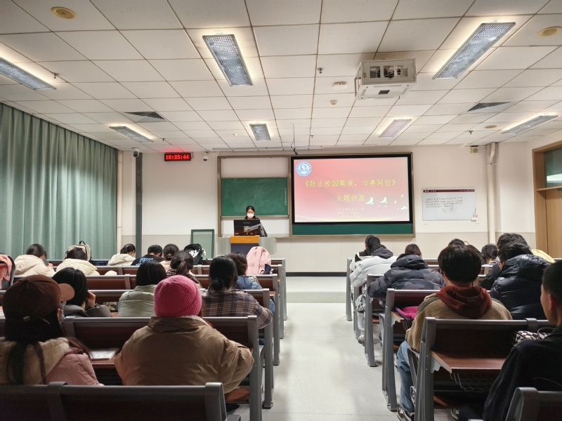 2023年12月9日,由济宁医学院护理学院权益服务部举办,2023级护理康养一班承办的“防校园欺凌,与善同行”主题宣讲活动在济宁医学院太白湖校区110教室举办。