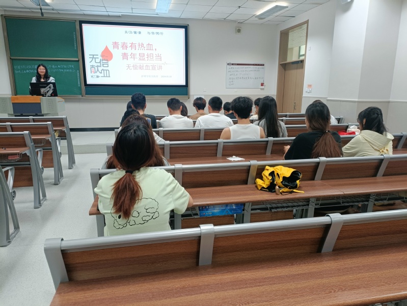 为了宣传献血对传递社会正能量的重要性,弘扬“奉献、友爱、互助、进步”的志愿服务精神,充分彰显师生的奉献精神,5月10日,由护理学院团总支举办、院学生会实践部承办的“青春有热血,青年显担当”无偿献血宣讲活动在教学楼212教室举办。