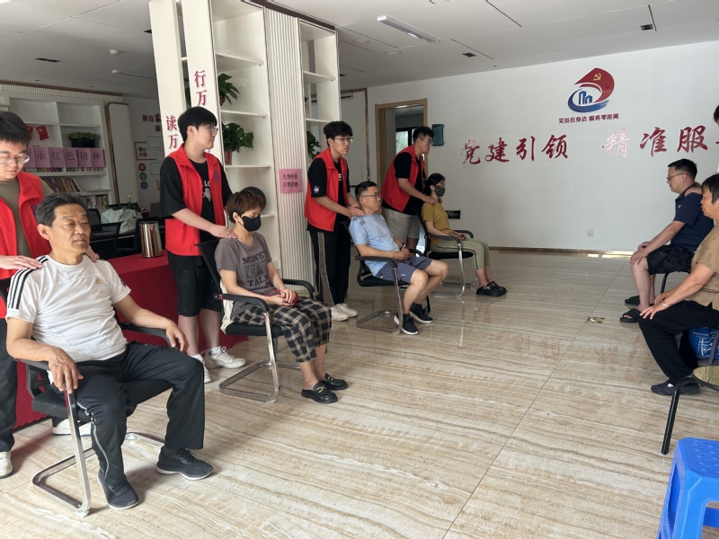 活动期间,队员深入社区,利用宣传海报宣讲中医饮食文化相关知识,为居民提供中医按摩服务。此外,志愿者们引领居民前往碧桂园天绘社区红帆驿站共同练习八段锦,亲身体验中医文化的魅力。