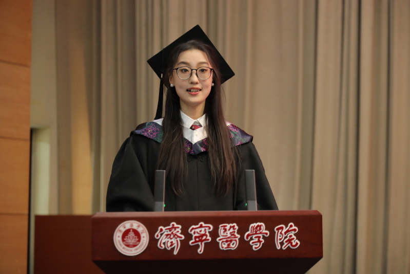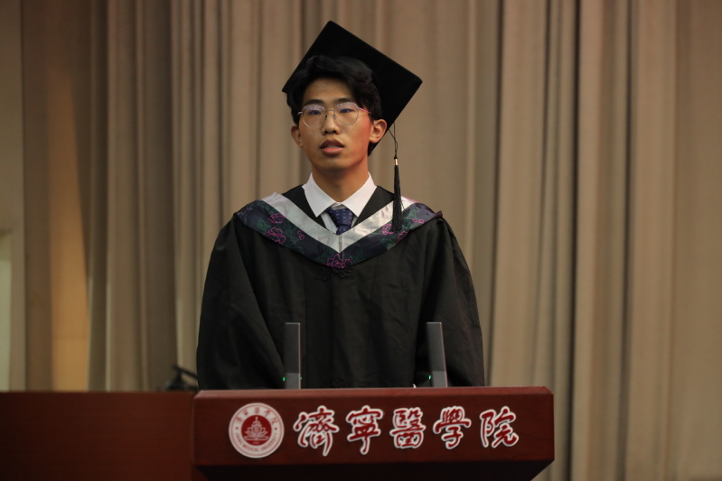 心有所期,当全力以赴;笃志前行,则虽远必达。校级优秀毕业生代表王喜城表示作为新时代中国青年要立鸿鹄之志,成栋梁之才,担家国大任,以青春之名,追梦前行!“于道各努力,千里自同风”,福建医科大学硕士研究生考取者孔祥杰,祝愿即将奔赴天涯的全体毕业生们依旧怀有锐气,胸怀勇气,在不同的人生道路上都鲜活明亮!省级优秀毕业生代表谭丽君,追忆求学经历、畅谈求学的感悟体会,表达了对学院的感激和不舍之情,发出了“为中国式现代化挺膺担当”的青春誓言。
