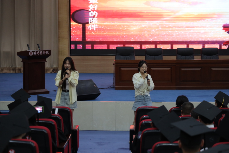 “骊歌声慢青春不散”毕业歌会点燃了毕业生的青春热情,浓浓的眷恋和美好的祝愿在一首首歌曲中流动。在校生代表送上歌曲《小美满》,祝福学长学姐毕业快乐,人生美满;《违背的青春》带领毕业生们再次回味那难以磨灭的青春记忆;《凤凰花开的路口》,表达了对母校、同窗和师长的难舍别离和深深眷恋,以歌之名致敬友谊;全场激情合唱《我爱你中国》号召毕业生致敬伟大的祖国,在启航前不断汲取奋进力量,在新征程中拼搏超越!