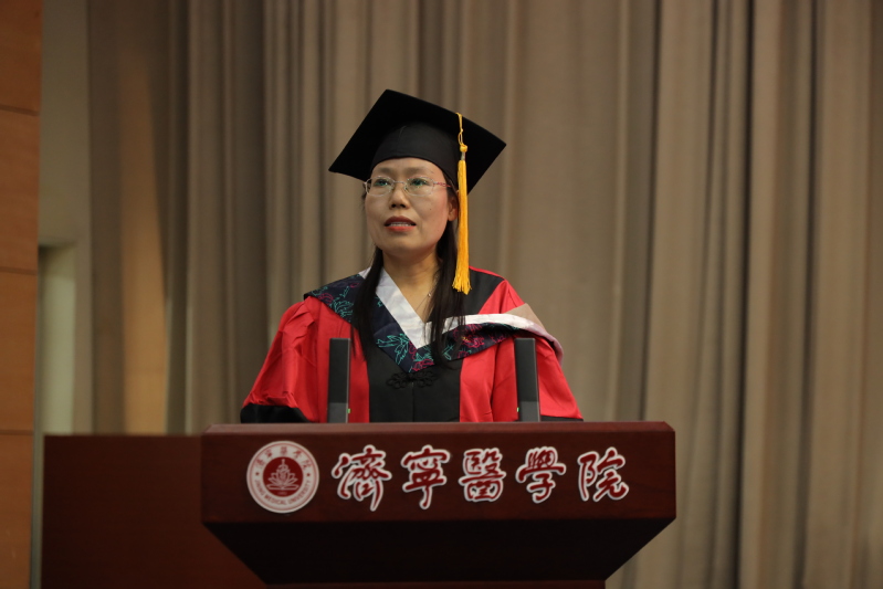 教师代表、重症护理学教研室主任王永芳带来师长的谆谆嘱托,她希望同学们始终保持好奇心和求知欲,始终保持自信和乐观的心态,始终保持感恩和回馈社会的精神,将在校所学付诸实践,着力为患者解除伤痛,在护理道路上砥砺前行,成为社会的栋梁之才。