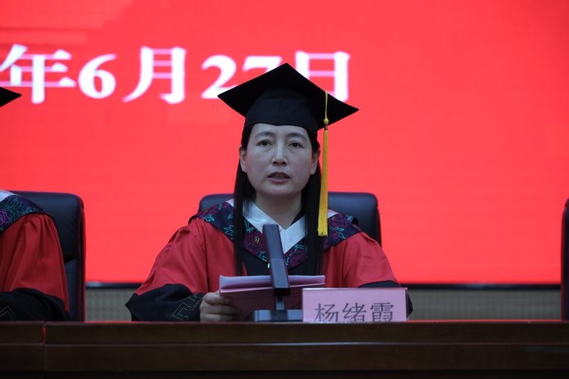 凤凰花开,仲夏蝉鸣。6月27日,护理学院2024届学生毕业典礼暨学位授予仪式在太白湖校区学术报告厅隆重举行。典礼由学院党总支副书记杨绪霞主持。