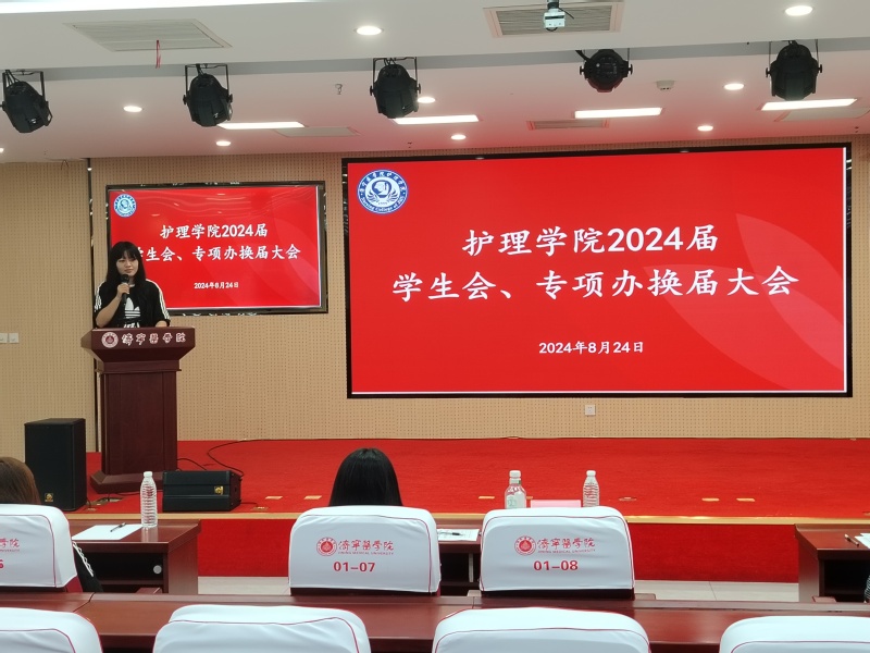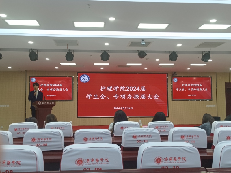 为加强我院学生会组织建设,切实服务大学生全面发展。2024年8月25日晚,护理学院举办2024届学生会、专项办换届大会。护理学院辅导员闫鑫老师、护理学院学生会、团总支专项办全体成员共同参加本次大会。