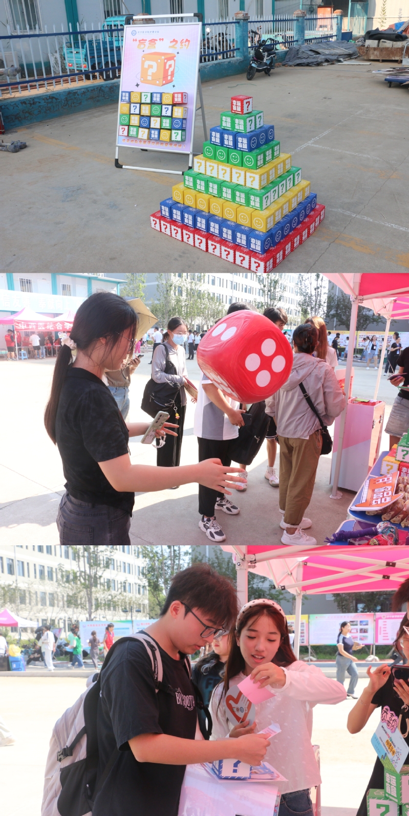 小小惊喜,大大心意。迎新现场,学院为每一位萌新们都准备了一份惊喜盲盒。前期,学院精心制作了文创礼品,并且遴选了69名学院优秀的学生党员、学姐学长作为新生的朋辈导师。萌新们可以通过回答校史校情小问题,以抽盲盒的形式获取文创礼物和朋辈导师信息卡,“牵手”自己的专属导师,一起解锁“成长密码”,携手开启在济医的新生活。