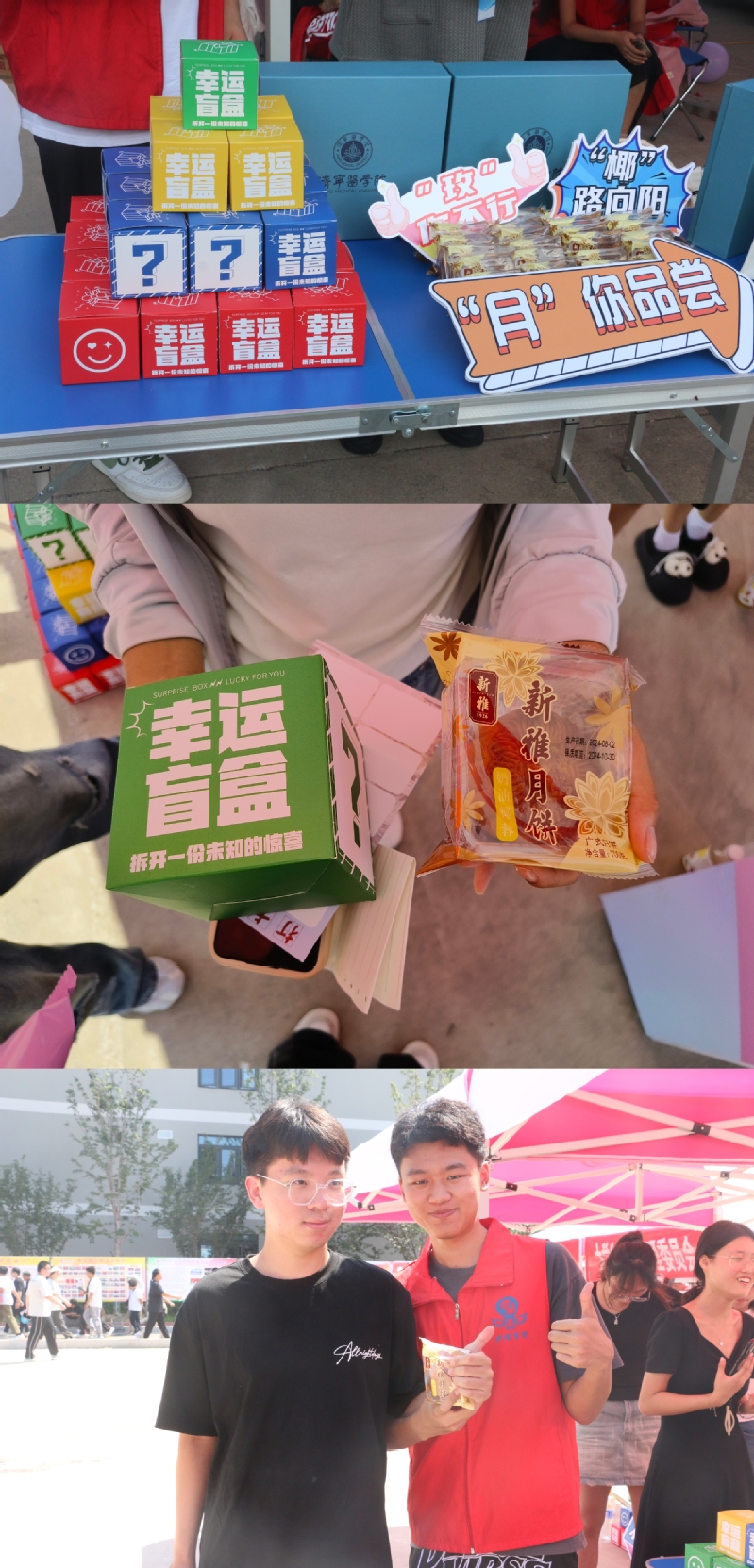 块块月饼,满满祝福。中秋将至,学院为新生准备了多种口味的“秋天的第一块月饼”,有“玫”你不行的玫瑰豆沙馅料、“椰”路向阳的椰蓉馅料、“紫”定成功的紫薯芋泥馅料等。以诙谐幽默的形式帮助刚步入新环境的萌新们开启破冰之旅,品味传统文化的魅力。