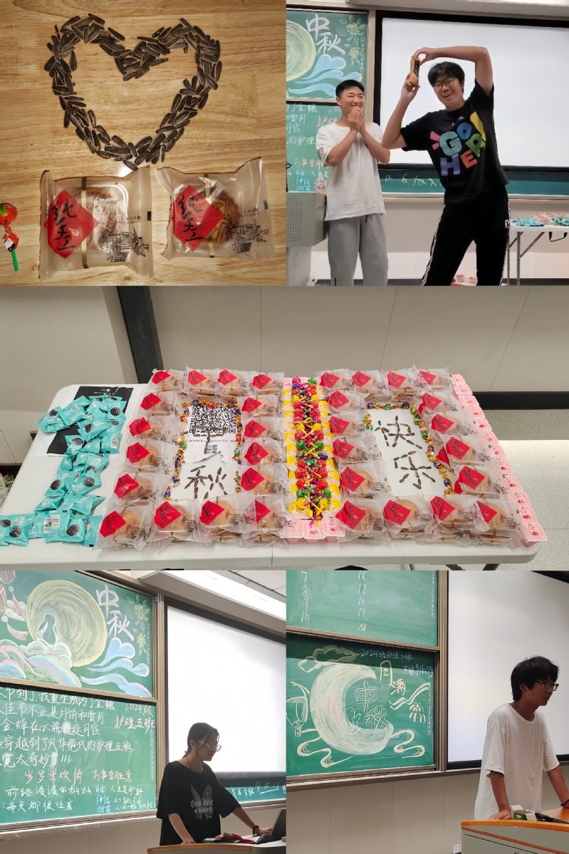 秋风送爽,适逢中秋佳节,护理学院为在校学生精心准备了月饼、棒棒糖、瓜子等温馨的礼物。在团建活动中,二班与四班同学的歌声和活力伴随着我们共同度过了这段短暂而美好的时光。中秋节象征着团圆,每一块月饼都代表着护理学院这个大家庭将一如既往地团结向前。愿我们每个人中秋节快乐,阖家团圆,幸福安康!