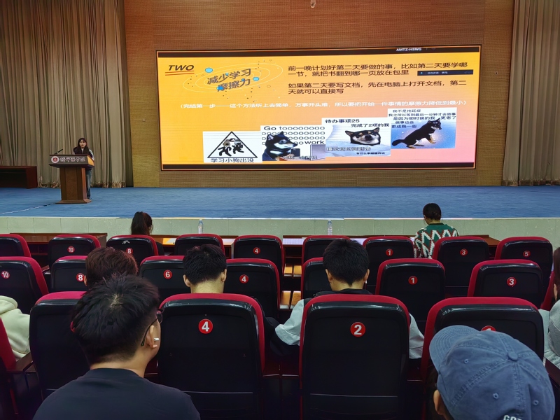 最后,22级的冯悦同学以“松弛感”学习为中心分享了自己的学习方法,并为大家推荐了学习网址和专业题库。