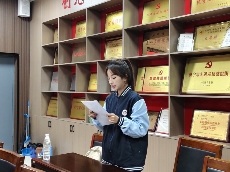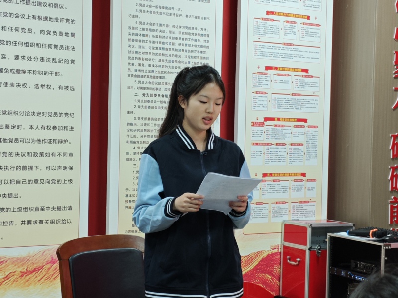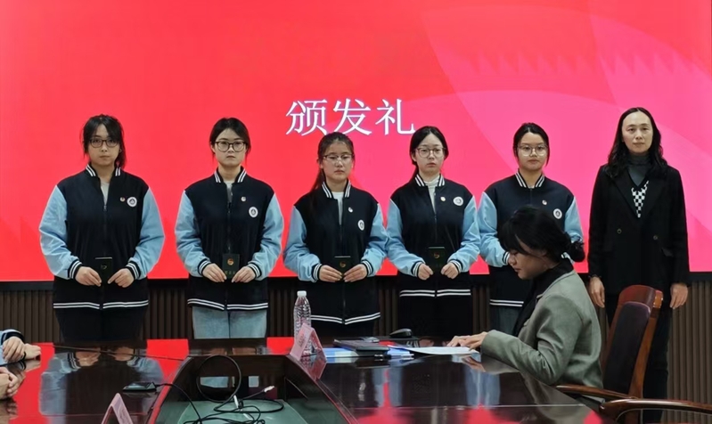 在颁发礼上,党总支副书记蒋红为新团员颁发团员证、佩戴团徽。