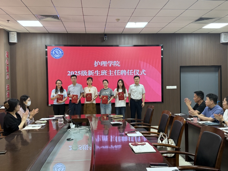 会议伊始,举行2025级新生班主任聘任仪式。秦峰为新聘任班主任颁发聘书,蒋红宣读《护理学院本科生班主任聘任名单》,既传递了学院对班主任队伍的重视,也为新生班级管理注入“新动能”。会议对学院学团工作取得的成绩和新学期的重点工作进行了总结和分析,研究部署了班主任岗位职责与考核管理相关制度,从学风建设、科研创新指导、日常管理等维度,明确班主任工作的具体要求与考核标准,为后续工作开展提供“操作指南”。会议强调,新学期要聚焦省属本科高校高质量发展绩效考核相关学科竞赛,解读竞赛类别及奖励机制,鼓励师生以竞赛为抓手,提升专业能力与创新素养,为学院学科建设添砖加瓦。
