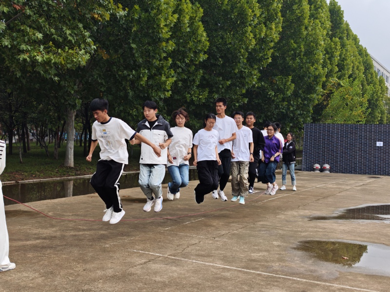 本次比赛吸引了全校多个班级组队参赛,经过前期层层选拔,共48支队伍晋级决赛。决赛设置接力赛和集体赛两个项目,在接力赛中,选手们如灵动的燕雀般在大绳间快速穿梭,队员间的默契配合展现出强大的班级凝聚力;集体赛现场更是高潮迭起,各队伍喊着响亮的口号登场,“一二、一二”的节奏声与场边此起彼伏的助威声、喝彩声交织,将比赛氛围推向顶点。