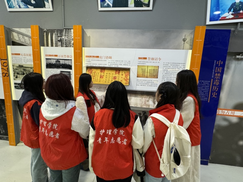 实践育人,服务社会——延伸教育边界。学院坚持“知行合一”,组织学生开展“防毒之路,生命守护”禁毒宣传志愿服务活动。志愿者们带领新生团支部参观禁毒教育长廊,学习毒品种类与危害,并开展禁毒知识抢答互动。通过沉浸式学习与现场讲解,学生们不仅提升了自身防范能力,更化身为禁毒知识的传播者,向公众发放宣传资料、普及防毒技巧,用实际行动诠释新时代医学生的社会责任。