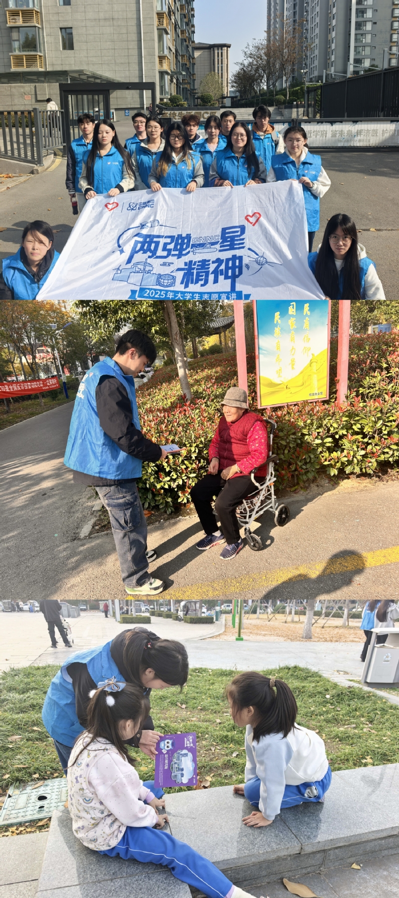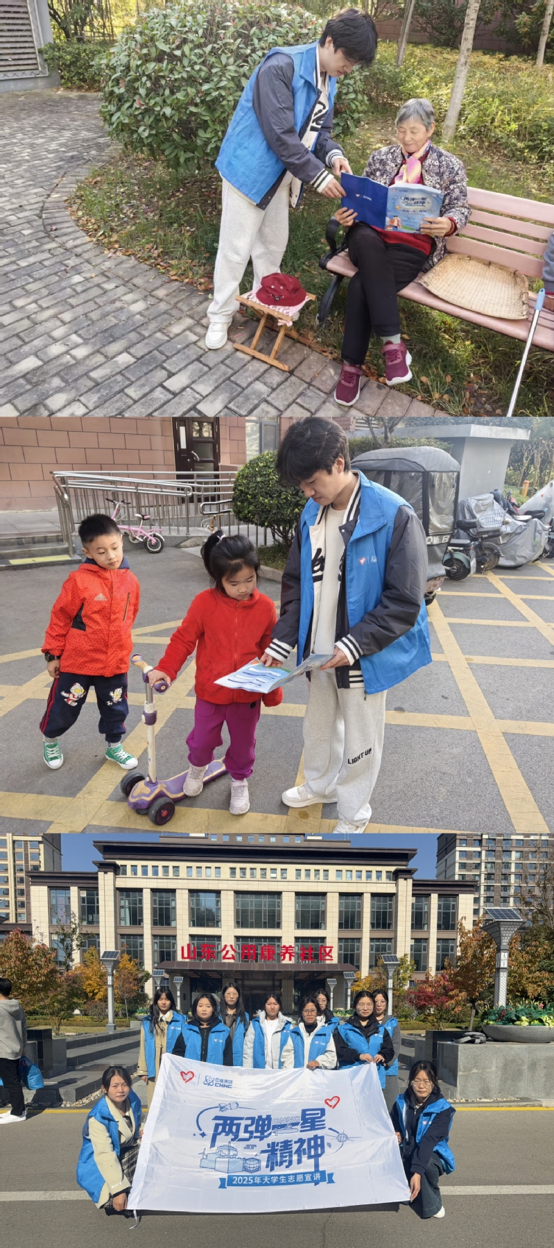 2025年6月-11月,宣讲团以“星耀长空承薪火,青年当先续荣光”为初心使命,开展了一系列浸润人心的宣讲活动。宣讲团成员走进济宁市博物馆、荷韵幼儿园、京杭佳苑社区等,直接影响受众超1000人。从济宁市博物馆到校园两弹一星游园会,从荷韵幼儿园到城投·南风花园,每一次宣讲都是一次跨越时空的精神对话。
