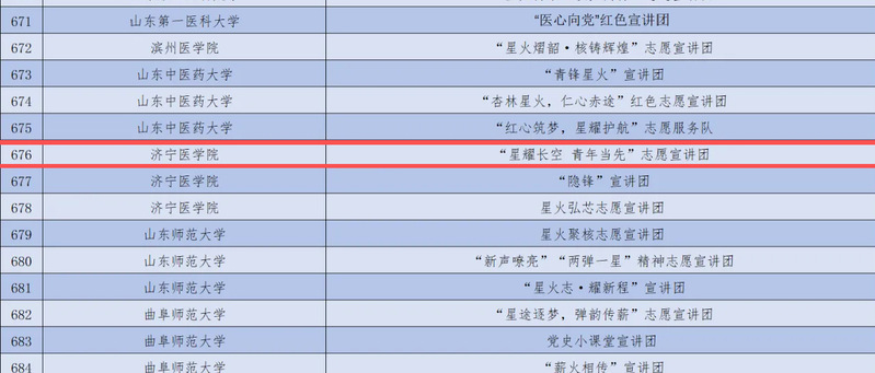 为深入学习宣传贯彻习近平新时代中国特色社会主义思想,济宁医学院护理学院“星耀长空 青年当先”志愿宣讲团成功立项2025年全国大学生“两弹一星”精神志愿宣讲团。